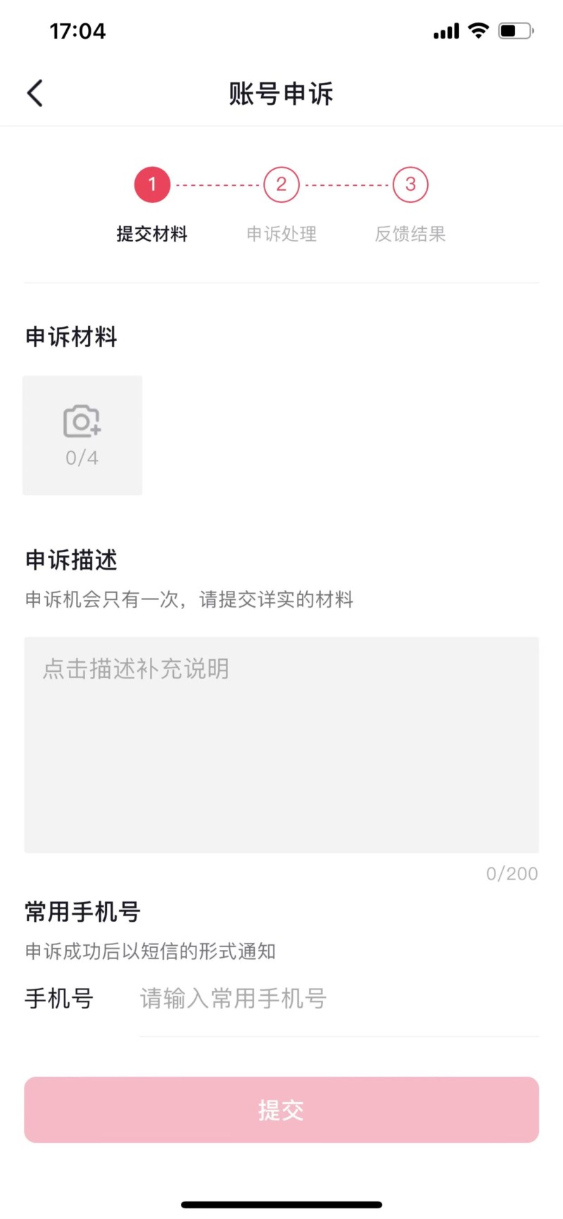 根據(jù)申訴類型填寫相關(guān)信息,并按照頁(yè)面提示提供必要的證明材料,比如個(gè)人身份證明、視頻證明等。
