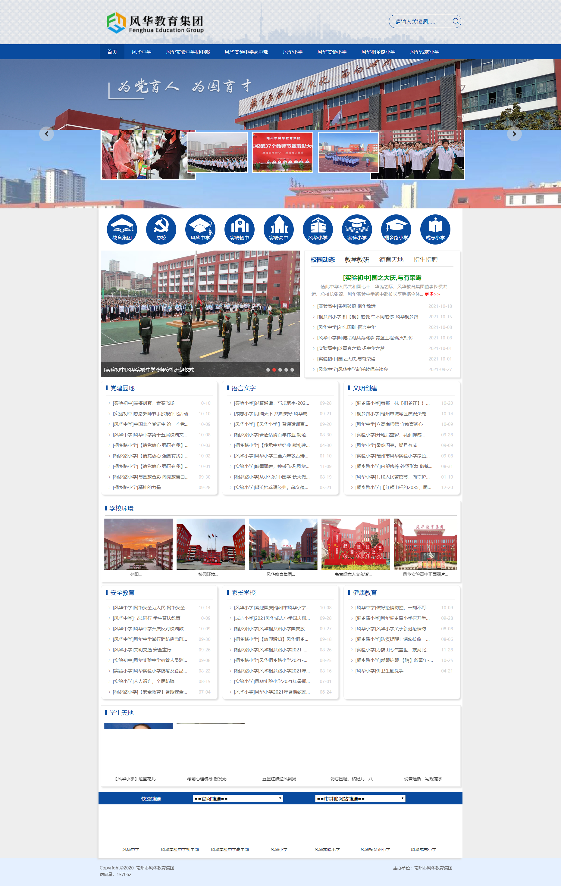 風(fēng)華中學(xué)自2008年第一次中考以來,連續(xù)13年中考成績綜合排名亳州市第一名,每年都有90%以上的學(xué)生考取省級示范高中。贏得了“管理嚴(yán)、質(zhì)量高、教風(fēng)正、學(xué)風(fēng)濃”的贊譽(yù)。先后被國家部委,省市縣區(qū)等部門命名為“中國西部教育顧問單位”、“江蘇省英語學(xué)科建設(shè)和實踐基地”、“安徽省地方稅收教育基地”、“安徽省科技創(chuàng)新試點(diǎn)學(xué)校”、“亳州市高校畢業(yè)生就業(yè)見習(xí)基地”;先后榮獲“亳州市民辦非企業(yè)先進(jìn)單位”、“亳州市安全綜合治理工作先進(jìn)單位”、“亳州市安全文明校園”、“安徽省民辦學(xué)校先進(jìn)單位”、“安徽省人民防空先進(jìn)單位”、“全國民辦學(xué)校先進(jìn)單位”、“中國民辦教育百強(qiáng)”、“亳州市‘雙比雙爭’先進(jìn)社會組織黨組織”、“亳州市五星基層黨組織”等榮譽(yù)稱號。
